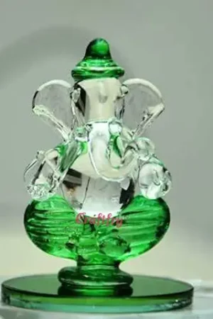 Original price was: ₹200.00.₹150.00Current price is: ₹150.00.God Ganesh Glass Blessing Both Side View Statue (Murti) Idol Shopiece Handmade of Crystal Glass for Worship, Decoration, Car Dashboard, Gift -