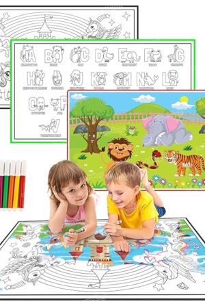 Original price was: ₹300.00.₹250.00Current price is: ₹250.00.DIY Coloring Mat for Kids Art and Craft Reusable & Washable Sketch Drawing Mats Educational Alphabets and Animal with12 Color Sketch Pens for Boys & Girls -